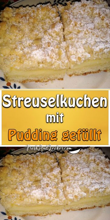 Streuselkuchen mit Pudding gefüllt